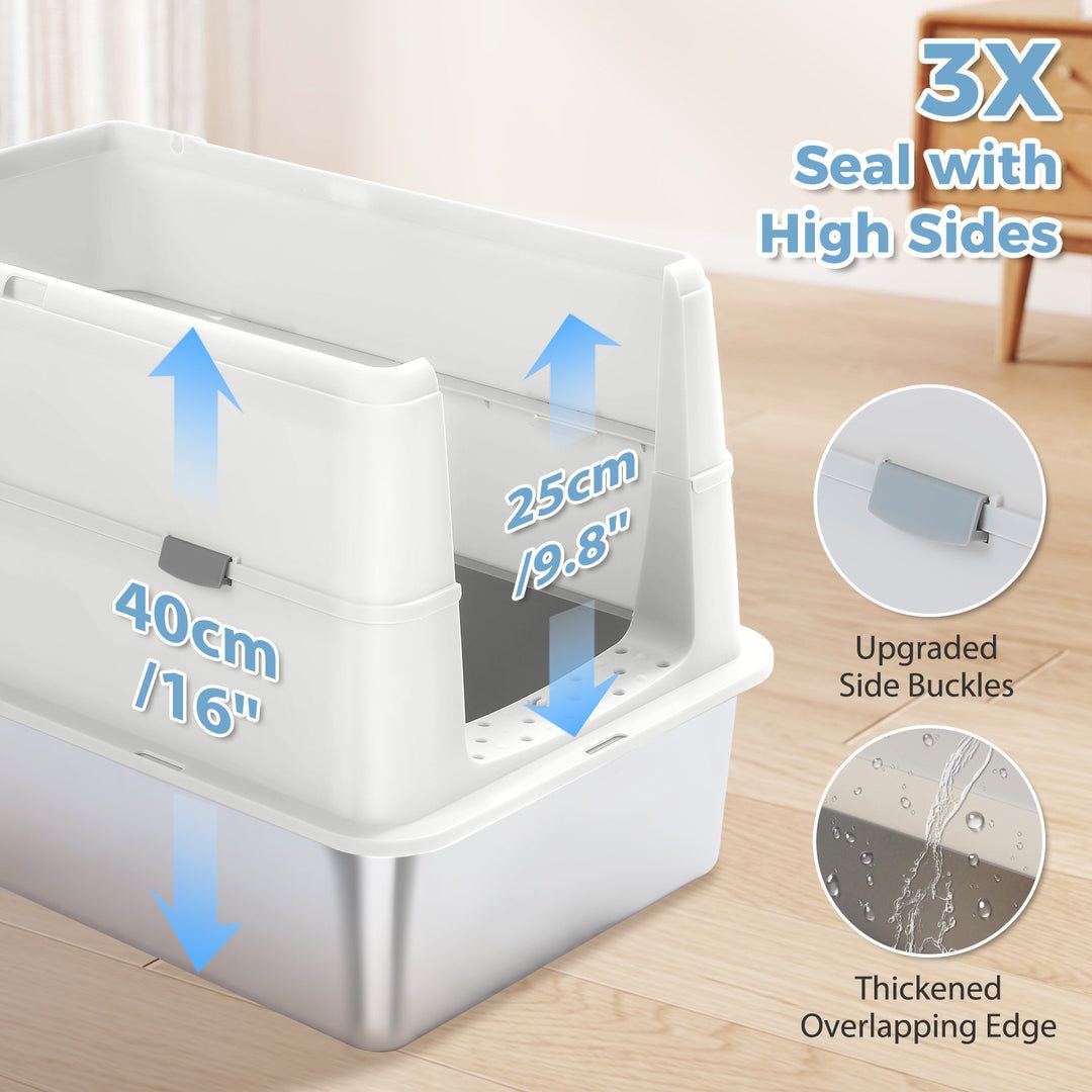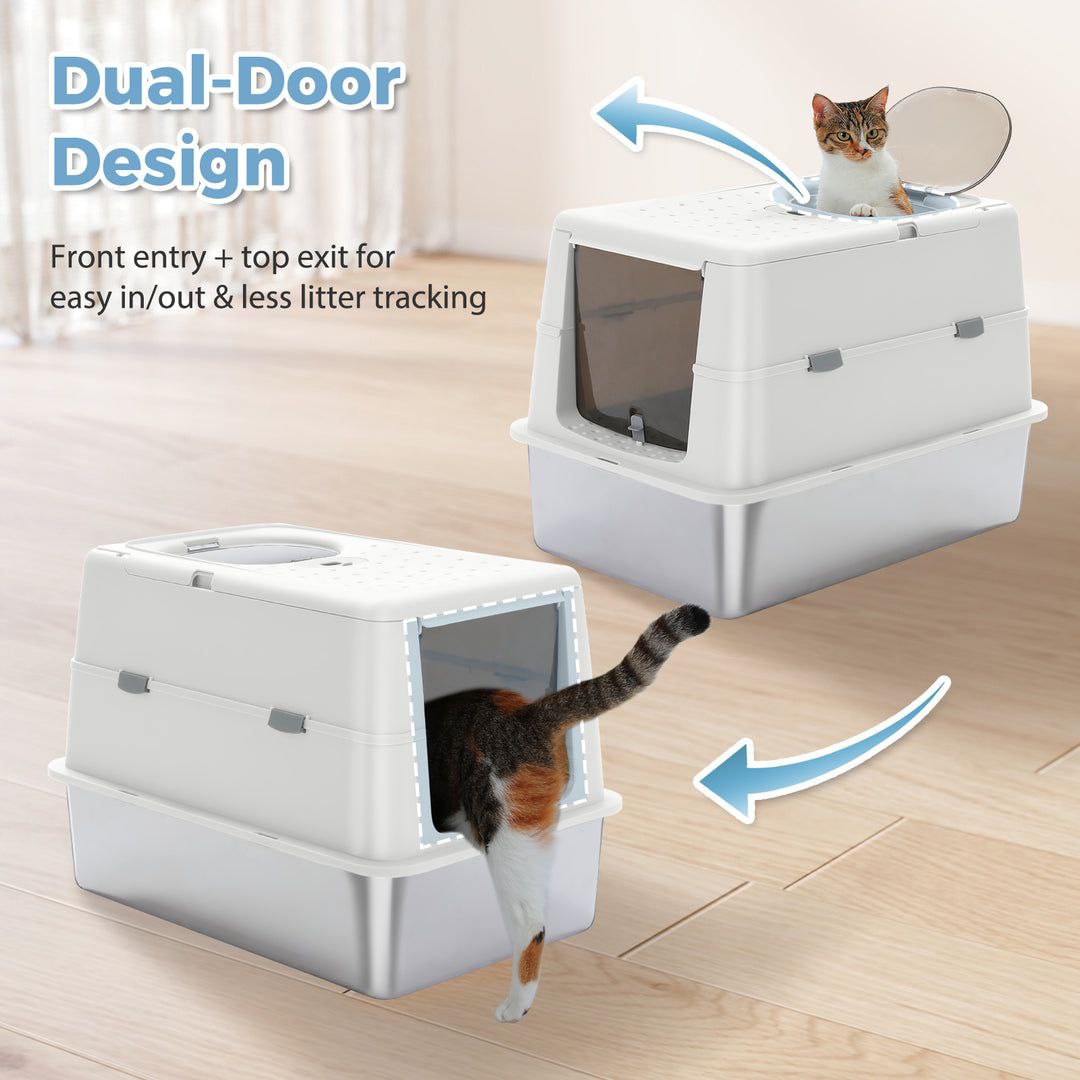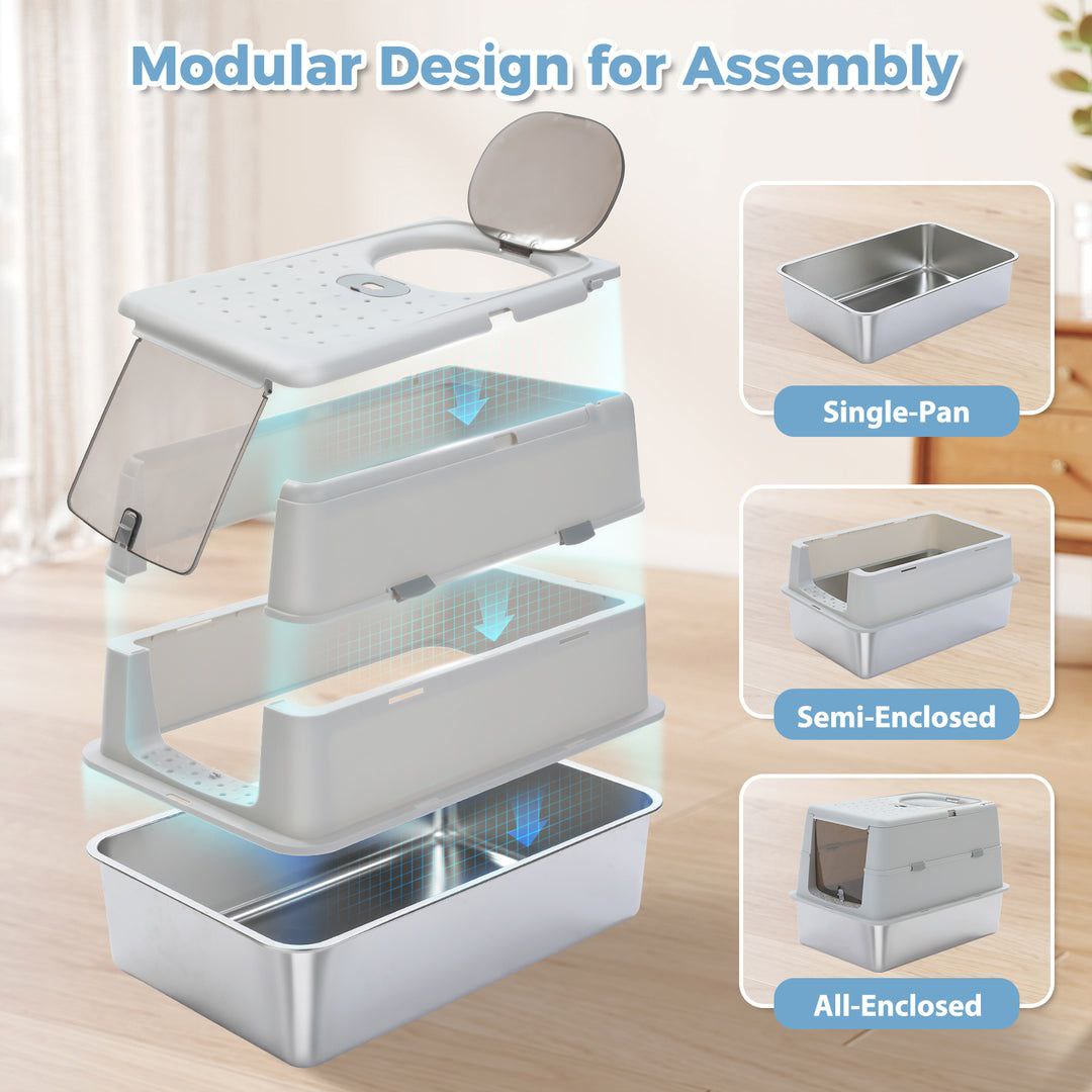 Premium Stainless Steel Enclosed Cat Litter Box XL 3-in-1 Modular Design with Dual Entry