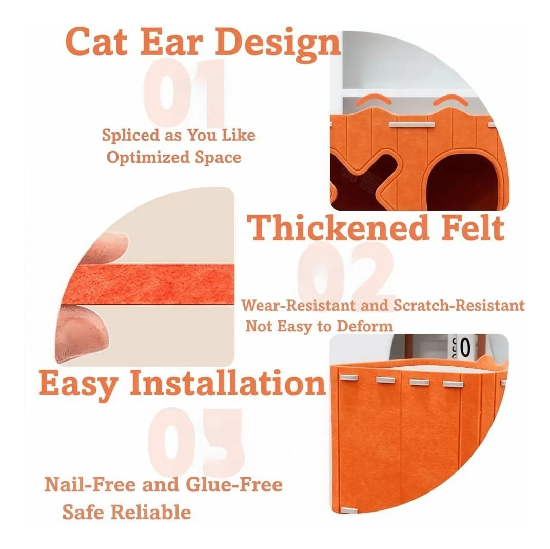 Add a pop of color to your home while giving your pet the ultimate comfort. The Sunset Orange cat house features playful X-shaped windows, making it a perfect spot for interactive play and relaxation. The soft texture of the felt acts as a natural insulator, keeping your pet warm in winter and cool in summer.